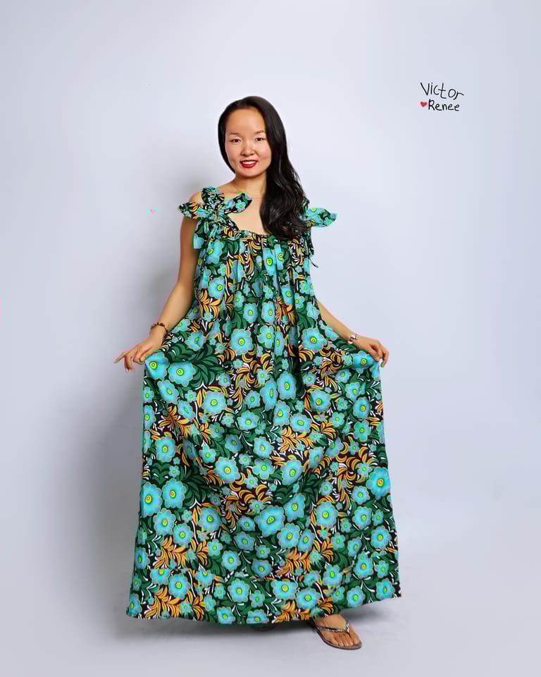 Step out in effortless style with this beautifully tailored Ankara dress, made from 100% light cotton for ultimate comfort and breathability. The long, flowing silhouette flatters every shape, while the delicate flower-leaf details on the shoulders add a cute and feminine touch. Perfect for sunny days, casual outings, or special cultural events, this dress combines comfort, tradition, and modern charm in one timeless piece. 🌸